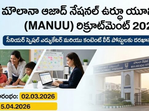 హైదరాబాద్‌లోని గచ్చిబౌలిలో ఉన్న మౌలానా ఆజాద్ నేషనల్ ఉర్దూ యూనివర్సిటీ (MANUU), సీనియర్ స్పెషల్ ఎడ్యుకేటర్ మరియు కంటెంట్ లీడ్ పోస్టుల భర్తీకి దరఖాస్తులను ఆహ్వానిస్తోంది. ఆసక్తి గల అభ్యర్థులు ఈ అవకాశాన్ని సద్వినియోగం చేసుకోవచ్చు.