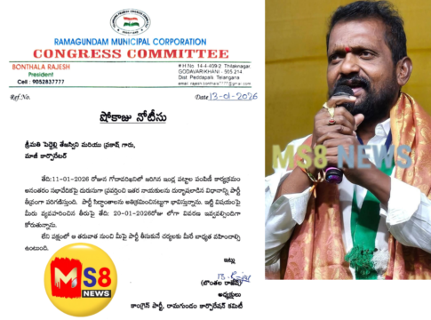 (MS8NEWS జనవరి 13):రామగుండం మున్సిపల్ కార్పొరేషన్ కాంగ్రెస్ కమిటీ అధ్యక్షులు బొంతల రాజేష్, మాజీ కార్పొరేటర్ తేజస్విని మరియు ప్రకాష్ కు ఈ నోటీసును జారీ చేశారు.