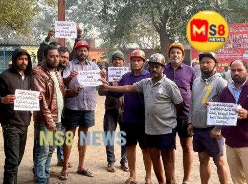 MS8NEWS(గోదావరిఖని/రామగుండం – డిసెంబర్ 17, 2025):సింగరేణి సంస్థలో దశాబ్దాలుగా అపరిష్కృతంగా ఉన్న ‘మారుపేర్ల’ (Alias Names) సమస్యను వెంటనే పరిష్కరించి, అర్హులైన వారసులకు ఉద్యోగాలు కల్పించాలని డిమాండ్ చేస్తూ నేడు ఆర్జీ-1 (RG1) ఏరియాలోని 1వ మరియు 3వ ఇంక్లైన్ గనుల వద్ద బాధితులు వినూత్న నిరసన చేపట్టారు. గని పరిసరాల్లో “వాల్పేపర్ స్టిక్కరింగ్” (Wallpaper Stickering) ద్వారా తమ నిరసనను తెలియజేశారు.