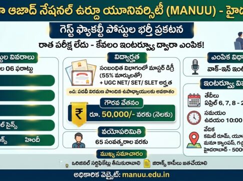 మనూ (MANUU) హైదరాబాద్లో గెస్ట్ ఫ్యాకల్టీ ఉద్యోగాలు – రూ. 50,000 జీతం!